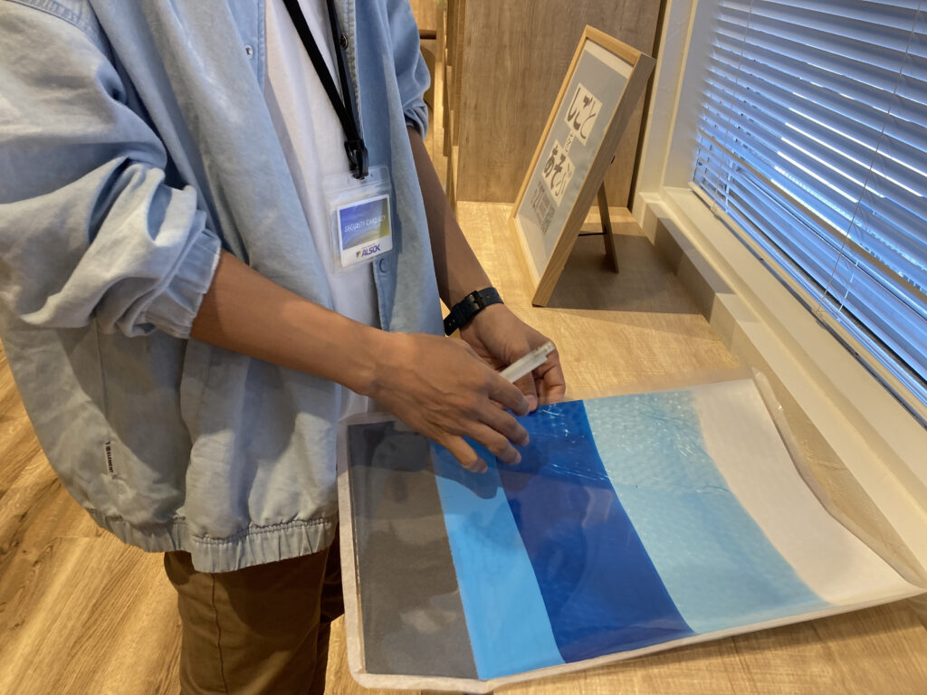 実際にサンプルをブラシで擦る体験をしました。驚くことに傷が付かず、その耐久性に感動しました。